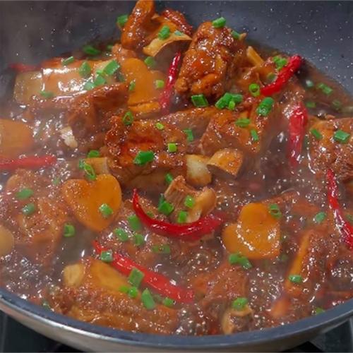 做红烧排骨需要准备好食材用料,尤其是新鲜的猪排骨,其次就是生姜、葱蒜、白糖、八角、料酒、蚝油、生抽等,整个制作的过程需要把握好火候,也可以根据个人的口味加一些辣椒和花椒粒,增加这道菜的味道。